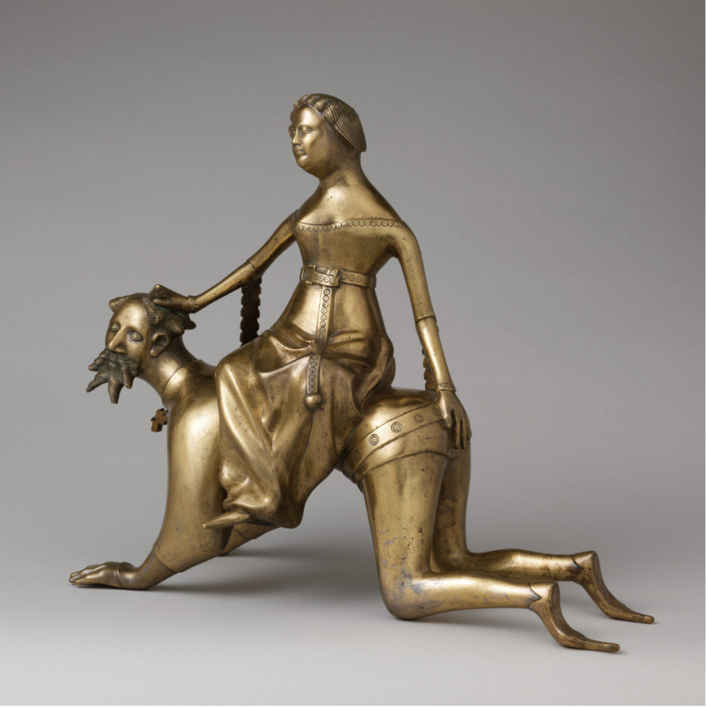 La passion amoureuse est une folie qui dépossède l’homme, comme le racontent les grands romans du Moyen-âge. Selon la légende arthurienne, les chevaliers Yvain, Perceval et Lancelot traversent des épisodes de folie, mais seul Tristan revient déguisé en fou à la cour du roi Marc. De précieux coffrets d’ivoire illustrent les épisodes-clés de ces amours fous. À partir du XVe siècle, nombreuses sont les oeuvres qui tournent en dérision le philosophe Aristote, qui se laisse humilier par la belle Phyllis, en guise d’enseignement à l’adresse du jeune souverain Alexandre le Grand, qui était l’élève du philosophe.