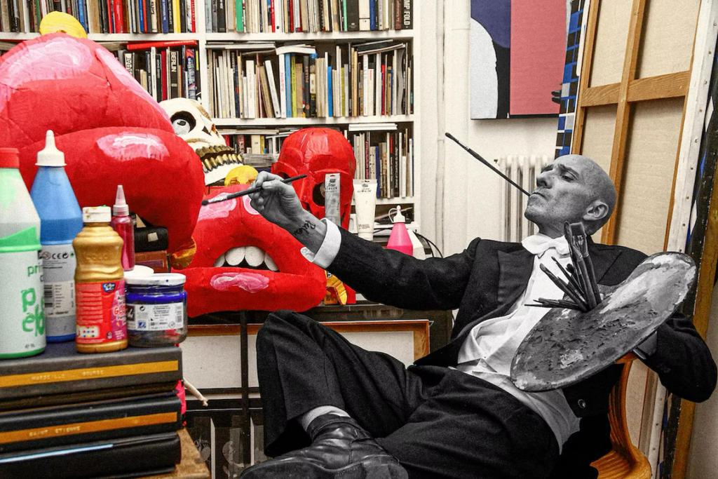 Toujours sur le site, l’image qui introduit Futuro Pelo, le dernier projet musical en date, montre l’étrange connexion entre un peintre dans son atelier, l’air grave, vêtu de noir et de blanc dans un environnement bariolé, sans un poil sur le caillou. On devine la provocation, puisqu’il s’agit de déguisements que les musiciens porteront à la scène lors d’un prochain concert. Pour l’anecdote, on dit que Magritte peignait en costume et cravate, très sérieusement, sur un chevalet disposé au centre de son salon sans que jamais la moindre tache de peinture ne macule le sol.