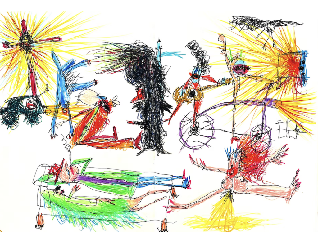 Le parcours de Benjamin Sportès semble balisé de choix parfois douloureux. À 18 ans, et pour une période de cinq ans, lorsque son père l’envoie étudier l’art de la peinture à Londres, le lieu qui génère l’art du futur. Le jeune homme se trouve confrontés aux accents écossais, irlandais, gallois, et cockney londonien. ‘Je ne capte qu’un tiers des conversations, adieu les potes, je découvre la vie en solitaire et mes amis musiciens me manquent terriblement. Mais le choc musical est puissant.’ Voilà peut-être pourquoi les images de Benjamin Sportès sont le plus souvent dénuées de tout langage verbal, tout en suggérant l’abondance de cris, de bruits et de tintamarres. Deviendra-t-il musicien ou dessinateur? Les deux, car l’artiste remplace le ‘ou’ qui sépare les options par le ‘et’ qui les connecte. Il ne tranchera pas.