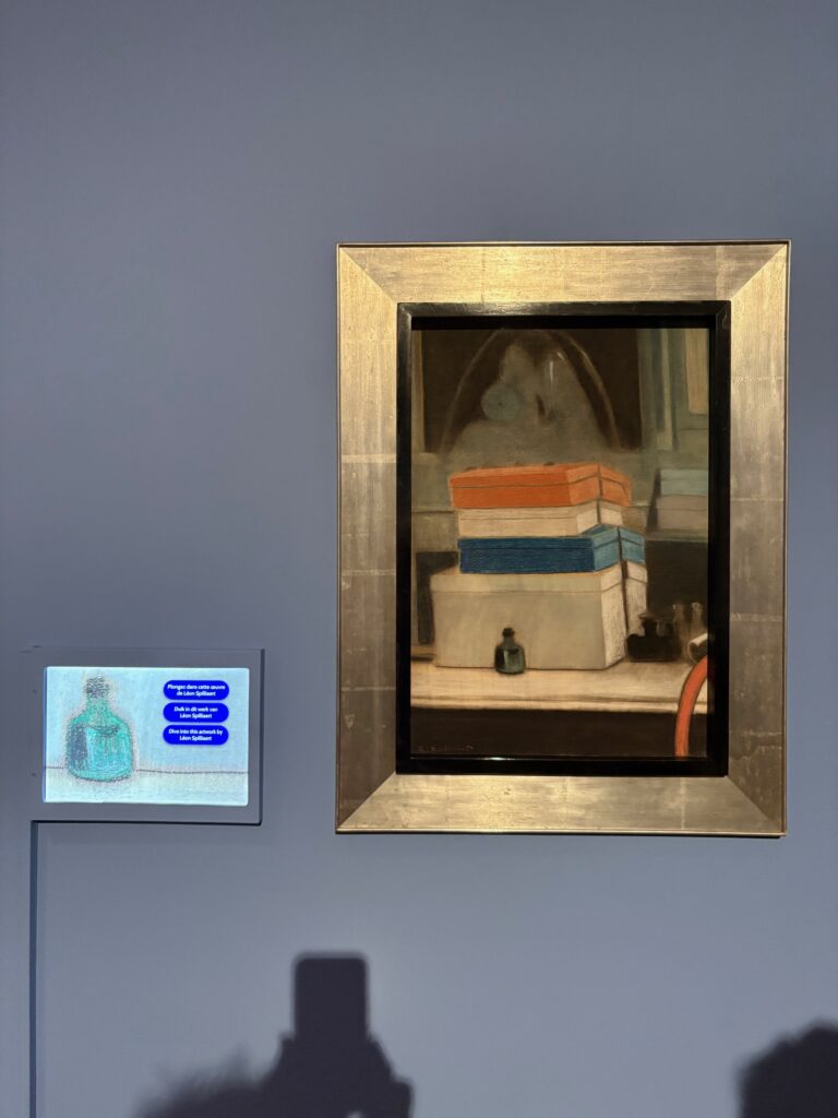 Deux tableaux, l’un de Spilliaert et l’autre de Fernand Knopff, font l’objet d’un traitement particulier: un écran tactile permet au visiteur de percevoir ce qui est caché et de comprendre de quels composants l’œuvre est fabriquée. Lorsque l’analyse de surface ne suffit pas, on peut recourir à des méthodes avancées pour examiner la matière plus en profondeur. Grâce à des techniques non invasives, comme la macro-fluorescence des rayons X (macro-XRF) et la spectroscopie Raman, on peut identifier certains des composants, tels que les éléments chimiques qui constituent les matières utilisées, sans toucher l’œuvre ni prélever d’échantillons.