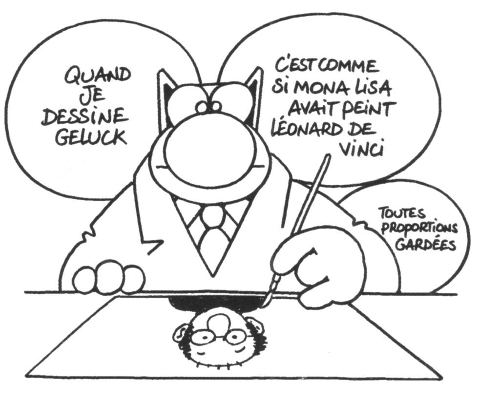 Geluck en fait trop, il n’est réductible à aucune catégorie instituée, il fait bouger les lignes et les hiérarchies – celles, notamment, qui séparaient jadis le High and Low, le majeur et le mineur, certes devenues bien poreuses; d’ailleurs le dessinateur se plaît à faire des déclarations niant leur réalité, par exemple celle-ci: ‘Pour moi, Siné et Reiser sont Velázquez, Cavanna est Molière.’