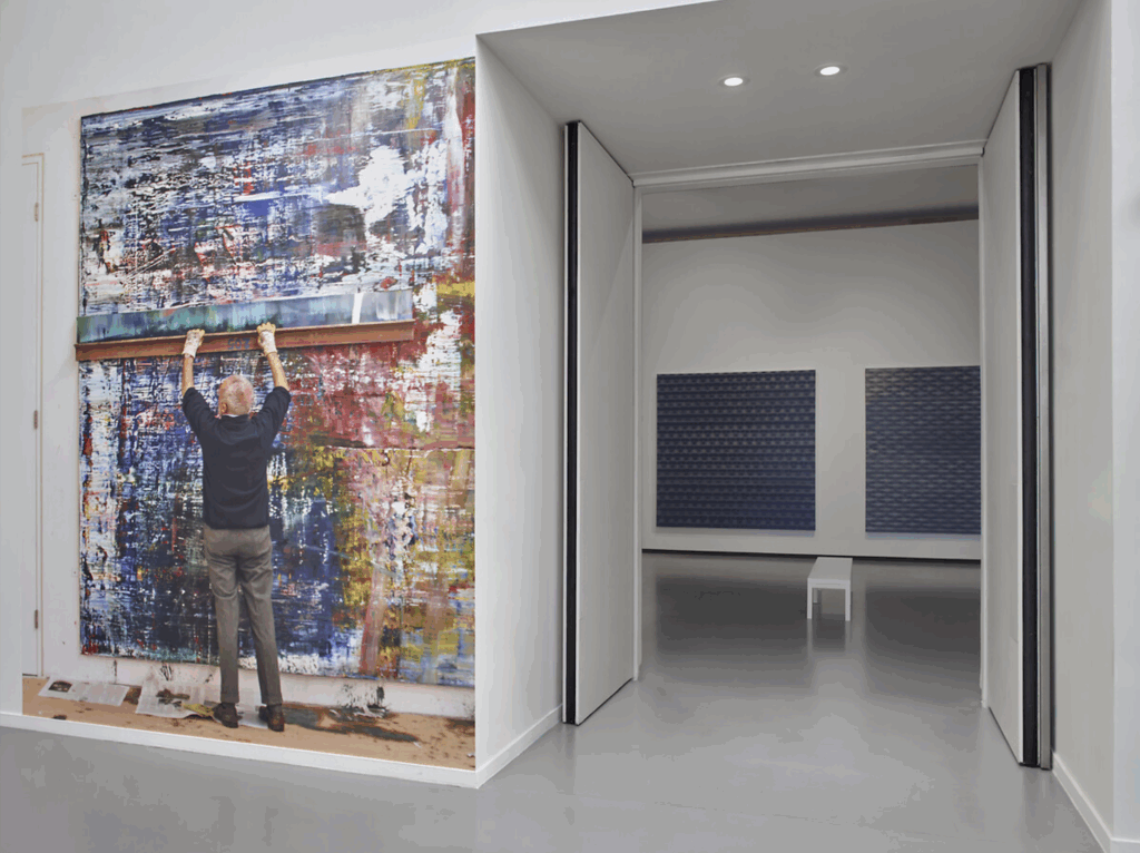 Gerhard Richter pratique le dérapage graphique systématique… tout en étant parmi les plus virtuoses des peintres de sa génération. S’il a été formé aux traditions du métier jusqu’au bout des pinceaux, il considère aussi la perfection technique d’un savoir-faire comme une prison, comme une zone de confort que le créateur a pour mission de quitter afin de réaliser des incursions sur des terres inédites. Pour ce faire, comme avec le flou et l’inattendu qu’il apporte, le hasard est un des outils du peintre. ‘Avec le pinceau, vous conservez la maîtrise. Le pinceau est chargé de peinture et vous posez la touche. Avec votre expérience, vous savez très exactement ce qui va se produire. Mais avec le racloir, vous perdez la maîtrise. Pas toute la maîtrise, une partie seulement. Cela dépend de l’angle, de la pression et de la peinture particulière que j’utilise.’ Il faut donc regarder le métier de Gerhard Richter de près, le ‘comment’, car c’est dans ce monde fascinant et en gros plan que cela se passe.