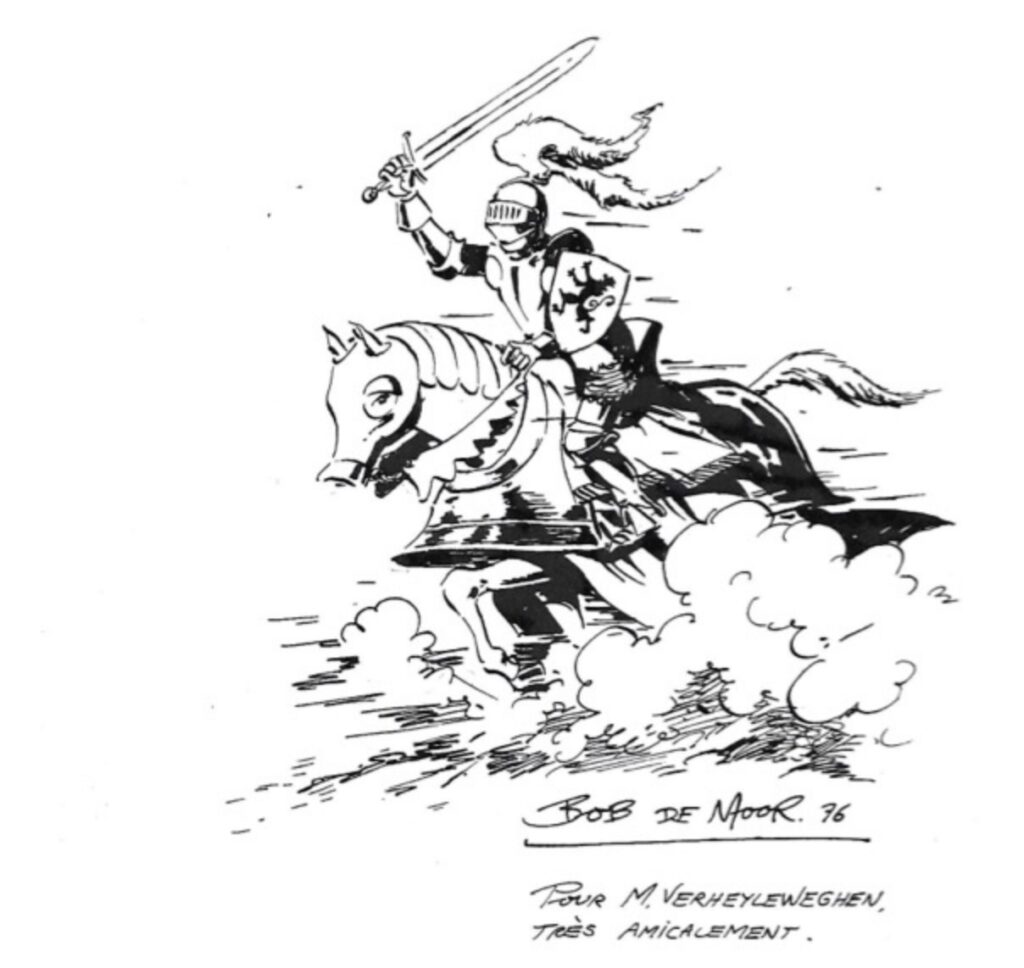 La 41e réunion annuelle des Amis de Hergé se tiendra à Nivelles le 7 mars 2026, dans les locaux de l’hôtel Van der Valk. Bob De Moor y sera mis à l’honneur, et c’est pourquoi Luc Térios a confié la rédaction d’une carte blanche à l’un des plus anciens amis de Bob: Jean-Pierre Verheylewegen. Écoutons-le: ‘Notre première rencontre a eu lieu il y a un demi-siècle, en 1976, à la Maison Communale de Forest, avec une séance de dédicaces que j’avais organisée. Sept autres ont suivi, à Bruxelles et en Wallonie. Lors de la première exposition sur Hergé en 1988 à l’Abbaye de Forest, Bob De Moor a rehaussé l’événement de sa présence. Après son décès, j’ai pu monter trois expositions qui lui étaient totalement consacrées. Mais le plus beau souvenir reste celui où Johan De Moor, fils de Bob, m’a confié deux de ses propres fils toute une après-midi afin que je leur parle de l’œuvre de leur grand-père qui venait de décéder. Nous avons là passé un moment chaleureux, avec quantité de souvenirs à partager. Les petits-fils étaient captivés. Leurs yeux et mes yeux brillaient d’émotion.’