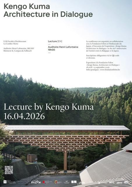 Outre cette exposition, Kengo Kuma donne une conférence exceptionnelle à l’ULB — campus du Solbosch — le jeudi 16 avril 2026 à 19h.