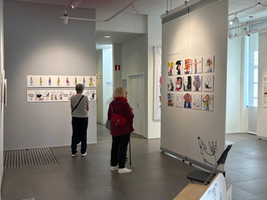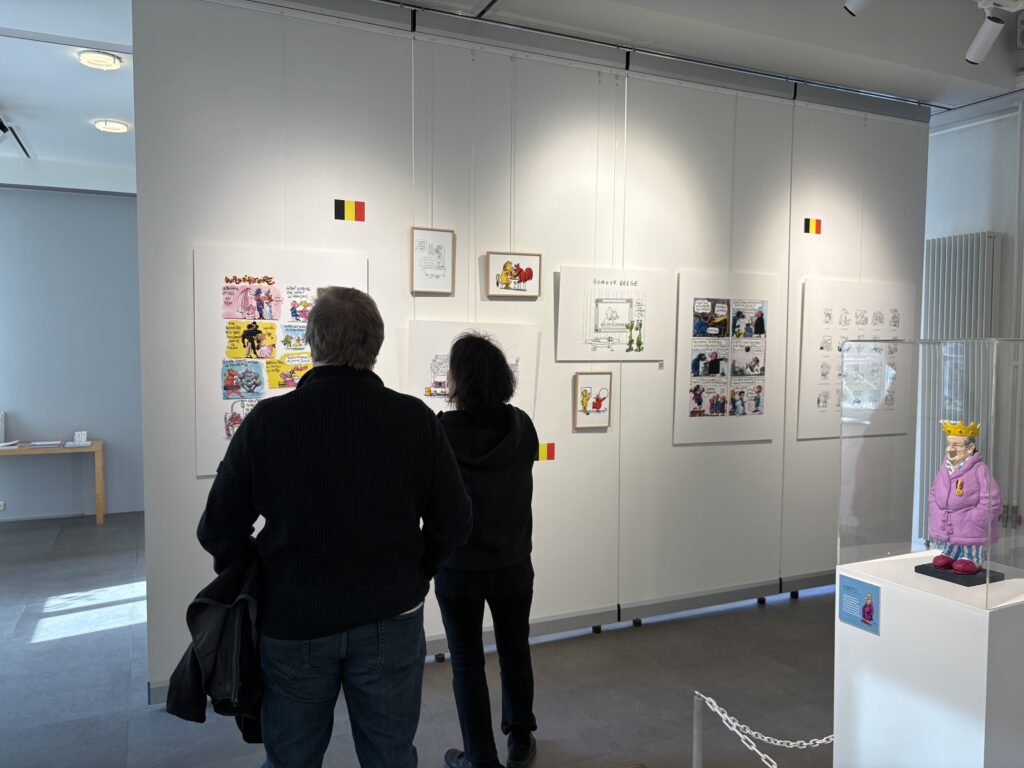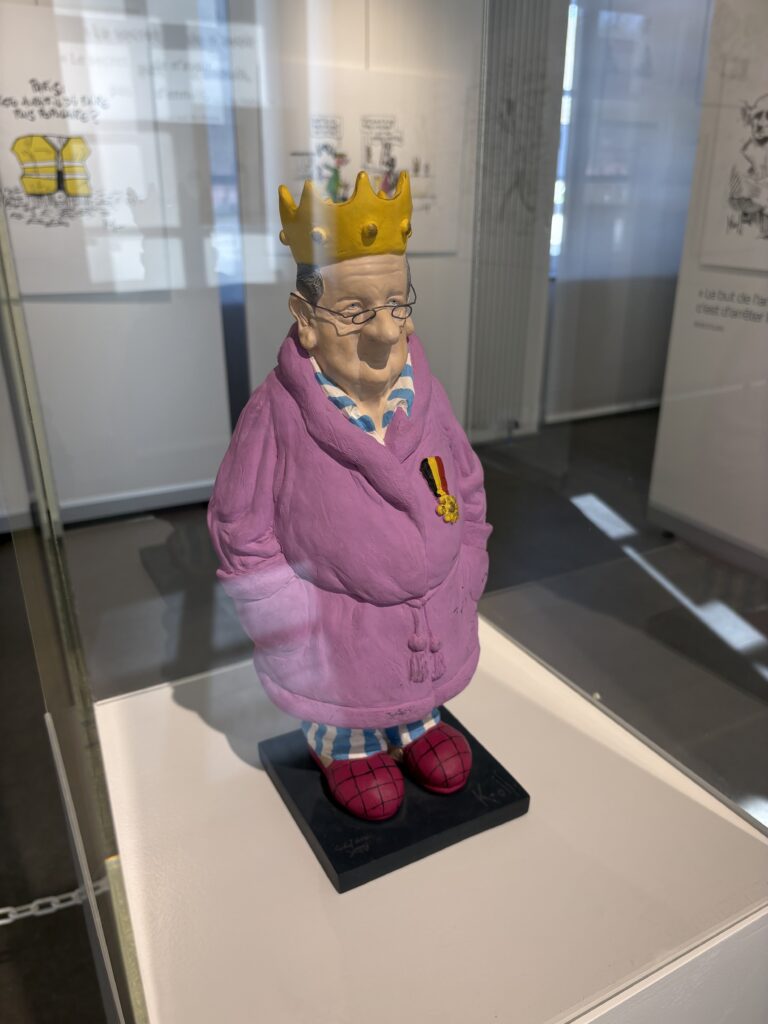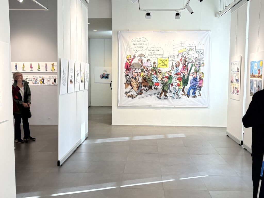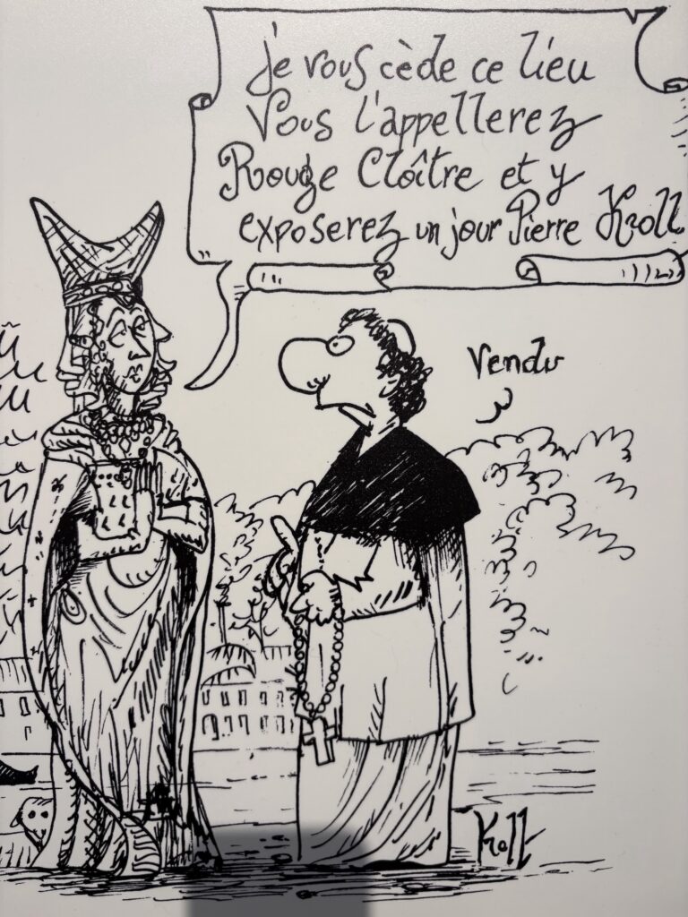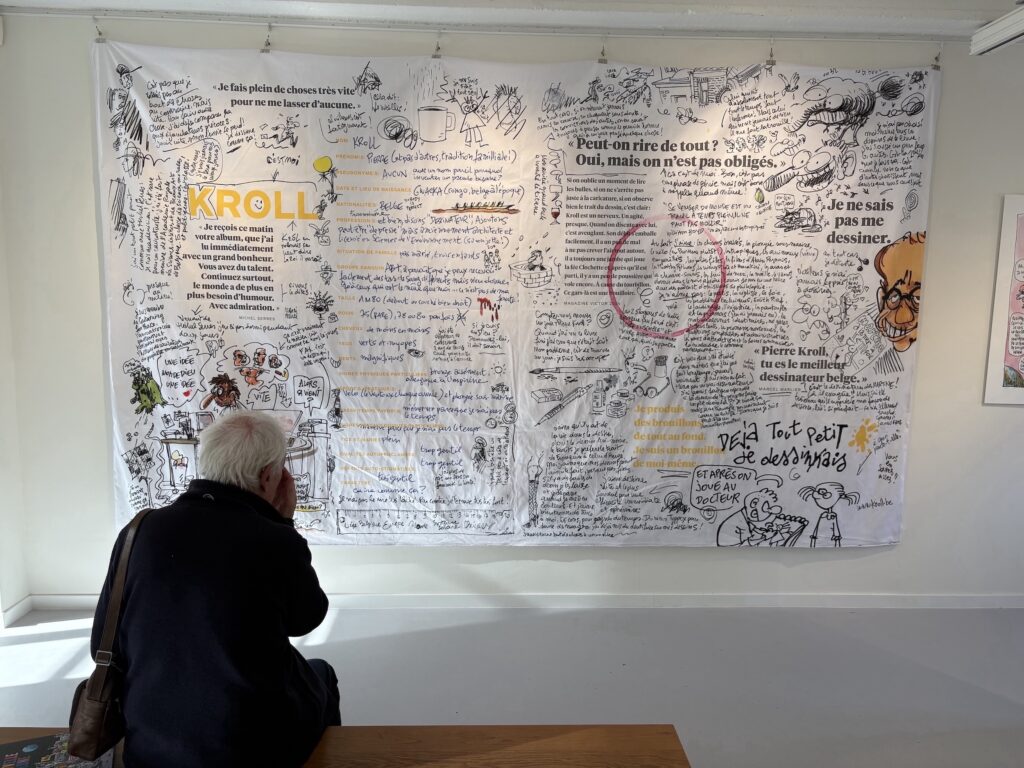 Les pièces exposées viennent de tous les bords, des anciennes, des nouvelles, des très connues et d’autres moins. Elles abordent la panoplie complète des thèmes qui habitent le dessinateur et l’homme médiatique depuis 40 années de publications ininterrompues. Une première sélection avait été réalisée par Marc Dausimont, l’ami, le collaborateur et le fin connaisseur de l’œuvre. Mais les cimaises ne permettant pas de montrer une telle abondance, c’est Rouge-Cloître qui s’est chargé — avec succès — d’une présentation en fonction des lieux. Les dessins de Pierre Kroll y gagnent une charge positive et résiliente, apaisée, à l’image du lieu qui les accueille.