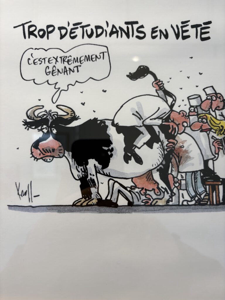 L’actualité est chaque jour un peu plus désespérante. Et pourtant, le rôle du dessinateur-artiste est de percevoir et rendre visibles ces détails qui font sourire. Car vue sous un certain angle, la sinistrose peut malgré tout révéler un petit aspect drôle, sur lequel quelques dessinateurs de presse mettent l’accent. C’est même la force d’un auteur d’être capable de le voir et de le raconter. Il en va du dessin de presse comme des malheurs des stars et des grands de ce monde: il aide les petites gens à supporter ce qui leur pèse. Les dérisoires contrariétés des uns font le grand bonheur des gens d’en bas. En ce sens, le dessin de presse aurait un rôle thérapeutique; il serait un support émotionnel indispensable au même titre qu’un animal de compagnie, un chien par exemple. Kroll dessine admirablement bien ce genre de cabots, ou une vache.