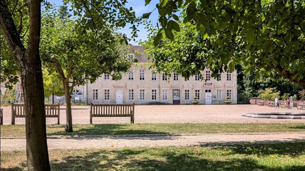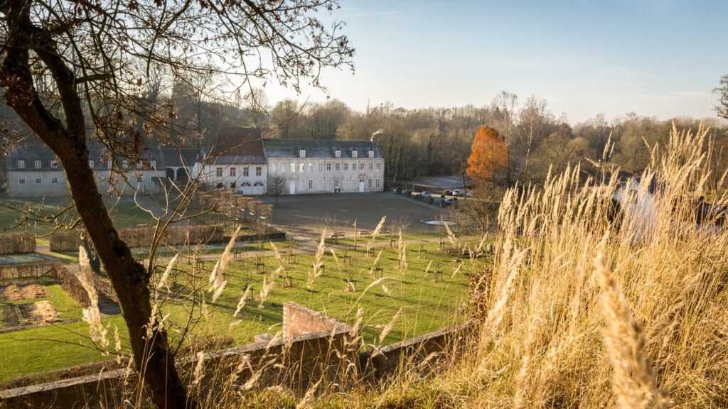 L’intuition de Pierre Kroll choisit bien les lieux où montrer son travail. Après le bâtiment Pouhon Pierre-le-Grand, à Spa, la présente exposition a fait halte au prestigieux Grand Curtius de Liège. Aujourd’hui, elle pose ses valises dans le magnifique écrin protégé — le site est classé — de Rouge-Cloître, en bordure de la forêt de Soignes aux abords de Bruxelles. Le prieuré de Rouge-Cloître doit son origine à l’ermite Gilles Olivier, qui aux alentours de 1359 établit son lieu de méditation solitaire dans la Forêt de Soignes, au lieu dit Rubea-Vallis, la Vallée Rouge, plus couramment désignée depuis par Roeden Clooster, le Monastère Rouge. Tout au long de leur histoire, les abbayes ont préservé des valeurs menacées par la fureur du monde extérieur. Jadis, Rouge-Cloître était un de ces havres de paix, hors des conflits et du temps, des peurs et de l’agitation frénétique qui tourmentent le monde.