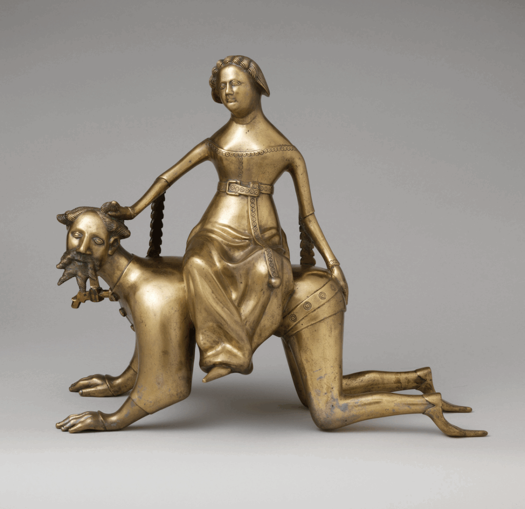 Aquamanile en forme de Aristote et Phyllis, Bronze, Pays-Bas du sud, 14e ou 15e siècle © Robert Lehman Collection / Met – New York