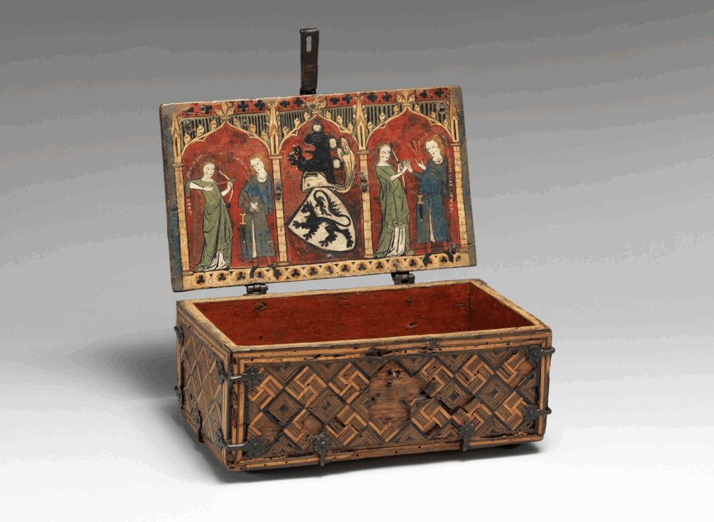 Coffret, Chêne, marqueterie et tempera – montures en fer forgé, Allemagne, 1325-1350 © Rogers Fund / Met – New York