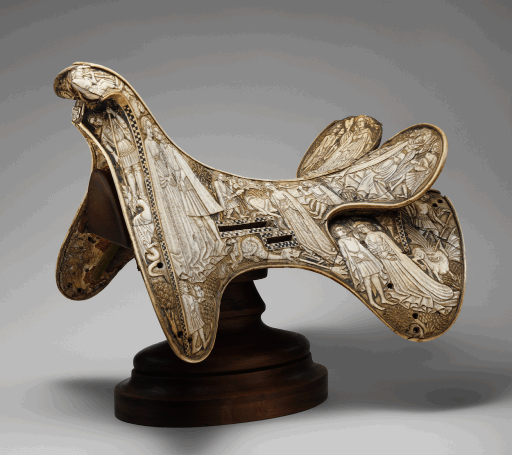 Selle, Os de bovin – bois et os de cerf – bois de tilleul – cuir brut – écorce de bouleau, Bohème – Europe centrale, 1400-1420 © Harris Brisbane Dick Fund / Met – New York