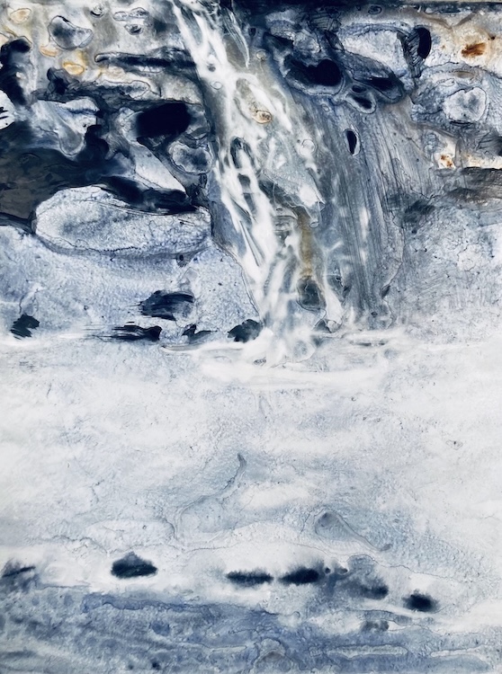 Ce ne peut être un hasard: ce ‘reset’ technique vers davantage de luminosité incarne un moment de l’œuvre où Victoria Calleja abandonne toute référence à l’humain, voire à l’idée de figuration. Certes, on peut encore y voir des paysages fantasmés, et d’éventuelles réminiscences perçues dans le Chili natal de l’artiste… où imaginées de toutes pièces, ce que l’on appelle des paréidolies comme on en perçoit dans les nuages par exemple. Quoi qu’il en soit, la volonté de voir des représentations où il n’y en a pas — les tableaux étant réalisés sans modèle et le titre éventuel étant ajouté après — prouve le besoin irrépressible des humains à voir des représentations partout. Or, voir de la représentation c’est imaginer du contenu, c’est-à-dire inventer du sens et une possibilité de discours.